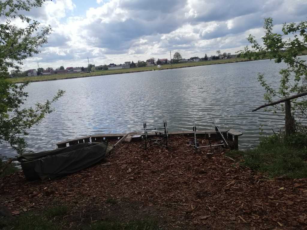 Majówka 2020 do ostatniej chwili była pod znakiem zapytania. Załamanie pogody + pierwsza wizyta na nieznanej nam jeszcze wodzie nie wróżyły dobrze… Jednak wyzwania kochamy prawie tak bardzo jak wędkarstwo więc chwilę przed godziną 12 dojechaliśmy na jeszcze nam nieznane łowisko – Perła Mazowsza znajdujące się w miejscowości Bielawa. Opowiem tutaj o naszych pierwszych wrażeniach po podjechaniu na stanowisko. Byliśmy pod wrażeniem tego jak dobrze można zaplanować łowisko. Widać, że właściciele wiedzą, co karpiarze lubią najbardziej. Na łowisku jest przygotowanych 12 dwuosobowych stanowisk. Stanowiska zostały zaprojektowane w stylu angielskim. Kora wysypana na stanowiskach dodaje uroku naszym przyjazdom w to miejsce, a dodatkowo uniemożliwia ślizganie się podczas deszczowych dni.