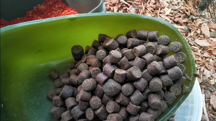 Druga alternatywa również opierała się na nęceniu punktowym, jednak w zupełnie innej formie. Przygotowaliśmy bowiem szybciej pracującą mieszankę drobnego pelletu, stick miksu i pokruszonych kulek. Taką mieszanką oklejaliśmy nasze ciężarki i posyłaliśmy zestawy do wody. Te zestawy były przerzucane z większą częstotliwością, właśnie ze względu na szybszą pracę. Musieliśmy liczyć się z tym, że w przypadku takiego rozwiązania możemy mieć do czynienia z częstszymi braniami, ale prawdopodobnie mniejszych ryb. Tak jak wspominałam wcześniej, była to nasza pierwsza wizyta na tej wodzie. To właśnie dlatego zdecydowaliśmy się na eksperymentowanie.