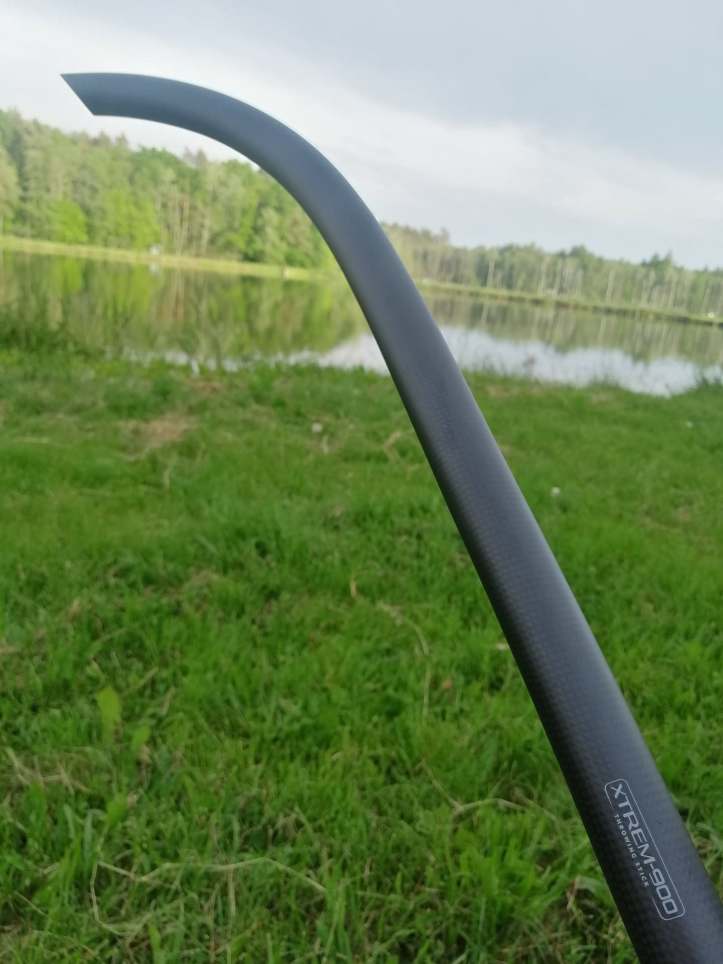Nęcenie tego miejsca składało się z 2 etapów. Najpierw, po odmierzeniu odpowiedniej odległości nęciłam za pomocą spomba. Później donęciłam miejsce za pomocą kobry węglowej XTREM 900. Bardzo miło mi się z niej korzysta, bowiem jest ona ultralekka i nie przeciąża ramienia podczas nęcenia. W przypadku bardziej miękkich kulek lekko namaczam kobrę – to sprawia, że podczas dalszych rzutów kulki nie rozpadają się w locie.