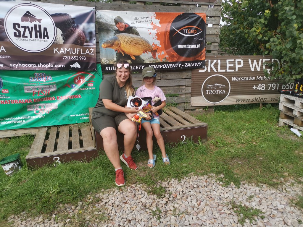 Nie mogliśmy także nagrodzić najbardziej wytrwałej zawodniczki, która dbała o samopoczucie wszystkich ryb łowionych na stanowisku numer 10 🙂 Lenka obdarowywała całusami każdą złowioną rybę, dbała o ich dobre samopoczucie i zapraszała więcej ryb do swojej maty 🙂 Lenka otrzymała od nas pakiet słodyczy, czadową czapkę i kulki proteinowe dla karpi łowionych przez nią w przyszłości 😍 Lenka wyrośnie na super wędkarę, która będzie pokazywała spotykanym wędkarzom jak powinno się obchodzić z każdą złowioną rybą
