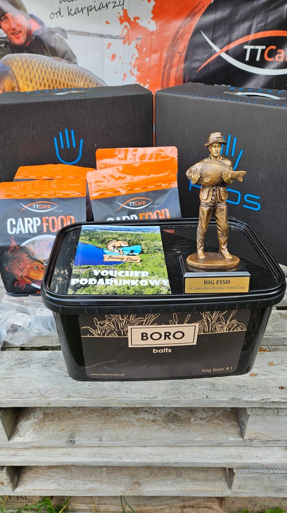 Łowca największej ryby zawodów otrzymał spodniobuty wędkarskie od firmy PROS, Big Box od Boro Baits. zestaw ciężarków SzyHa, Voucher na zasiadkę na znanym w całej Polsce łowisku – Borowy Staw z nagrodą pieniężną w gotówcei zapas spożywki od firmy TTCARP!